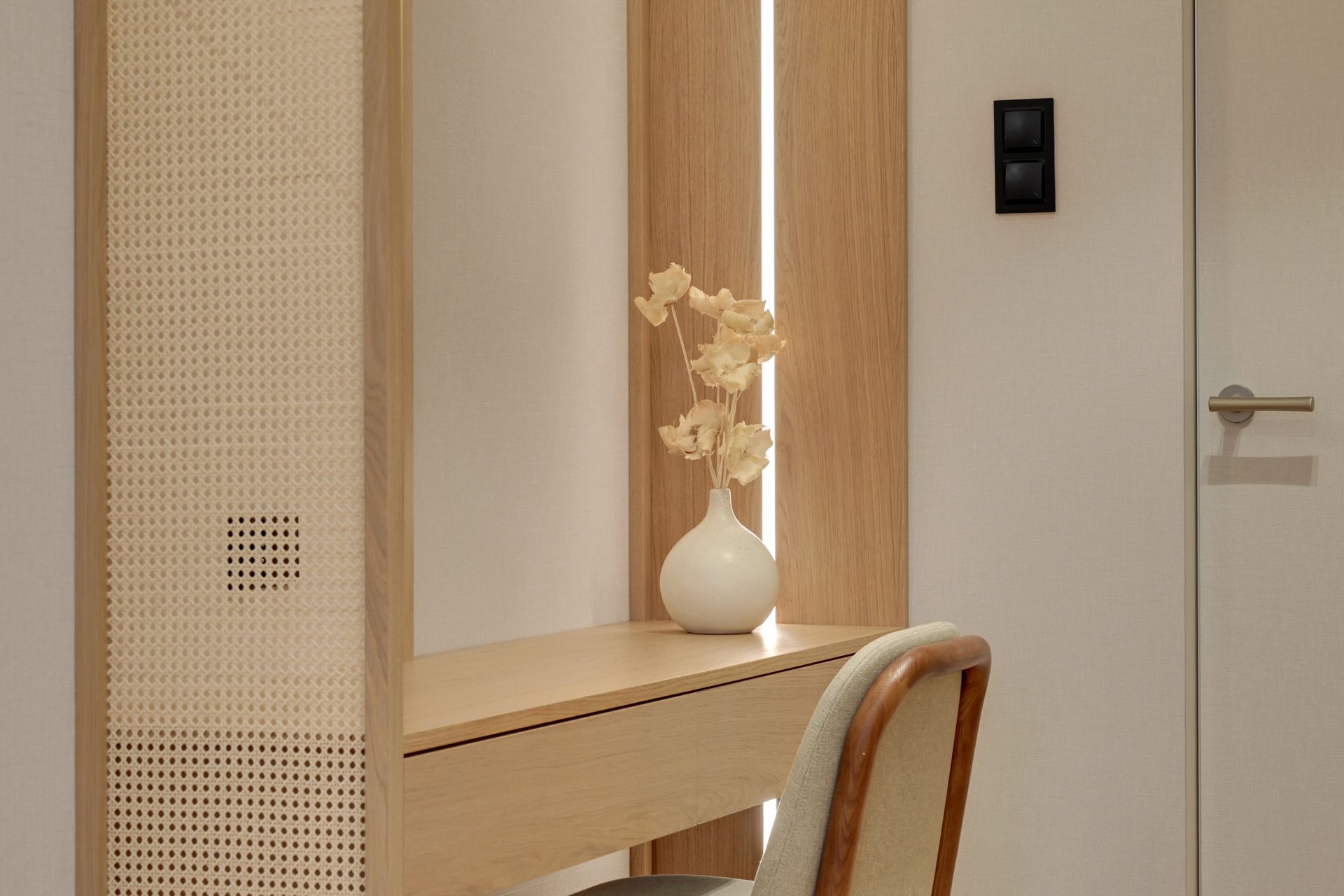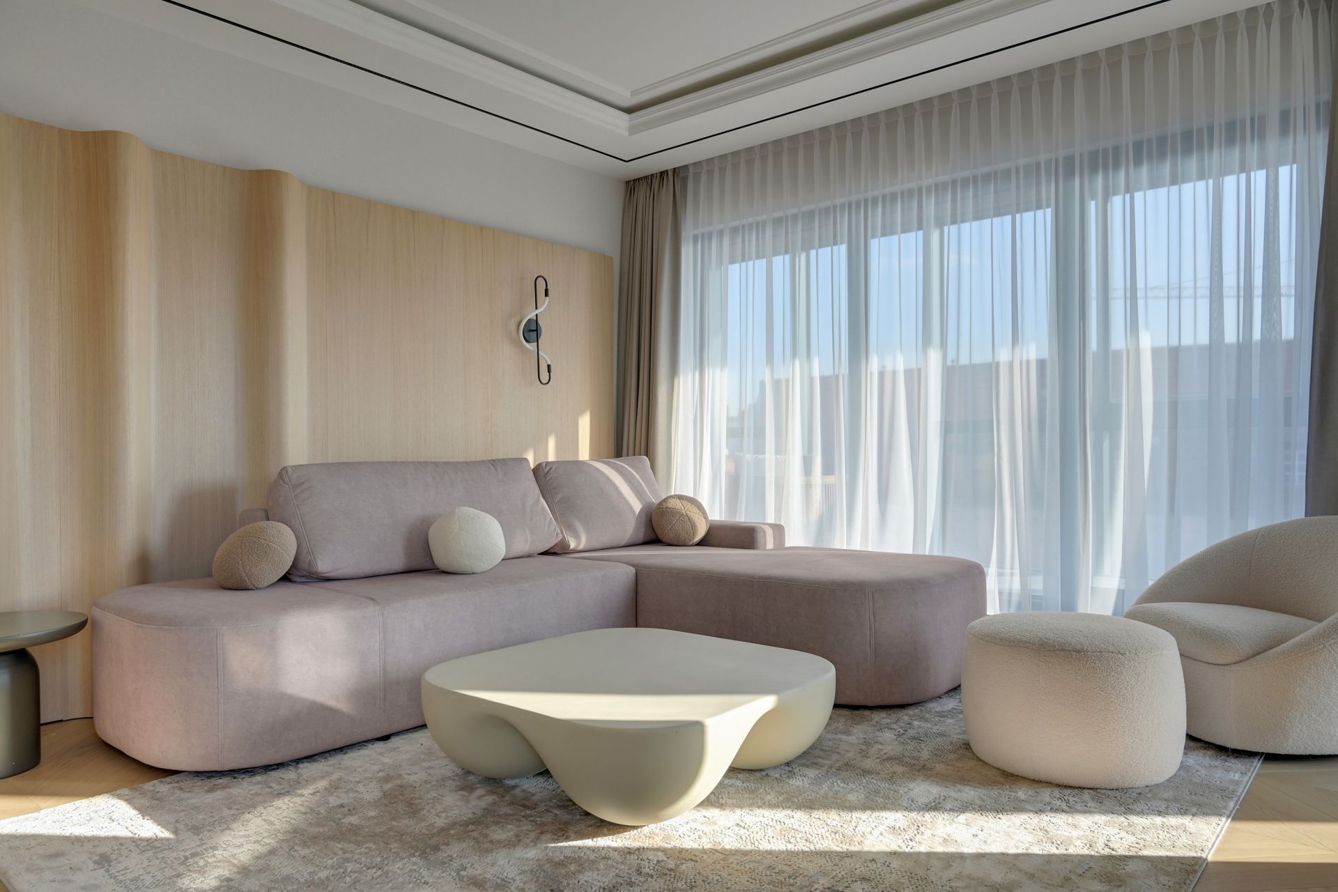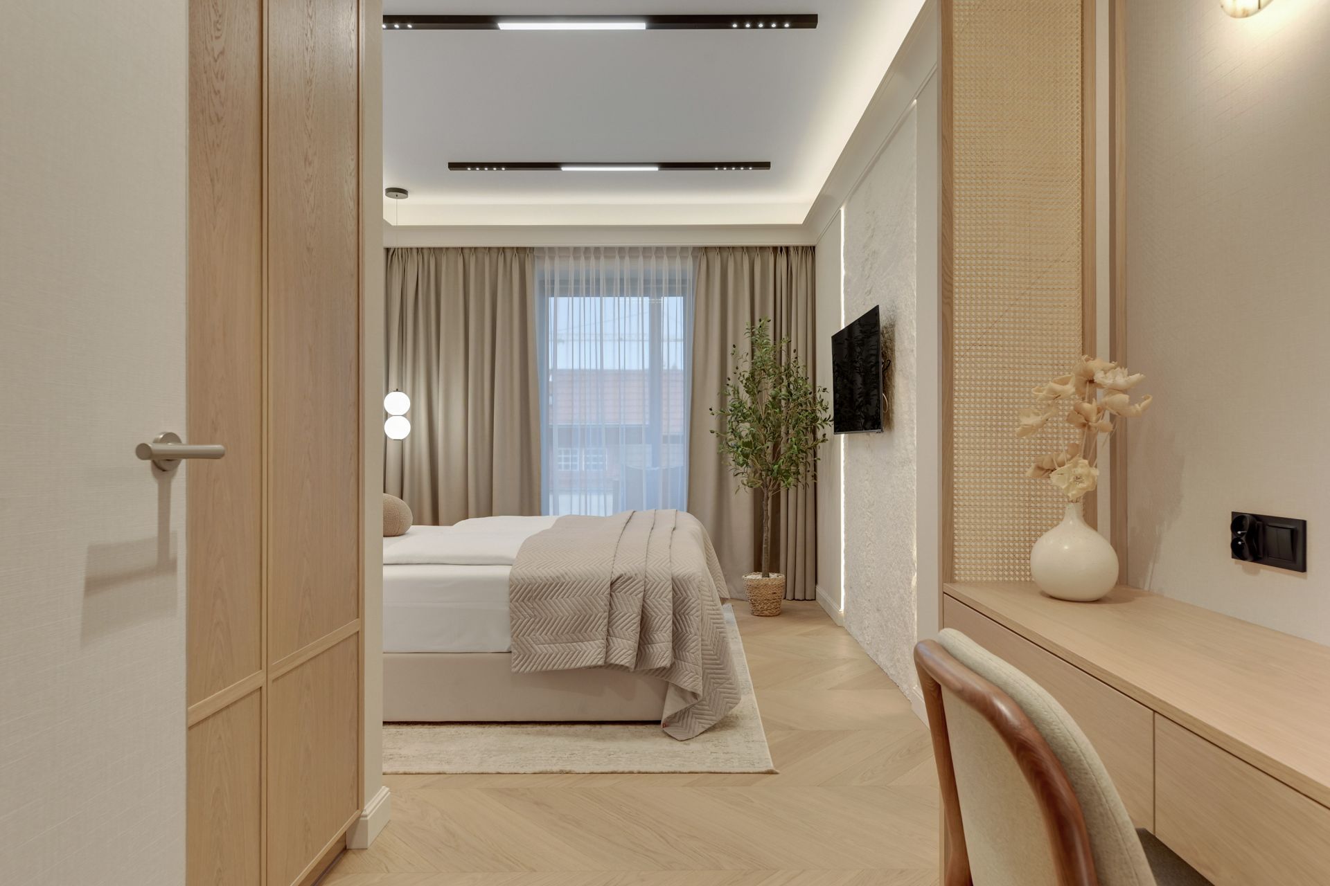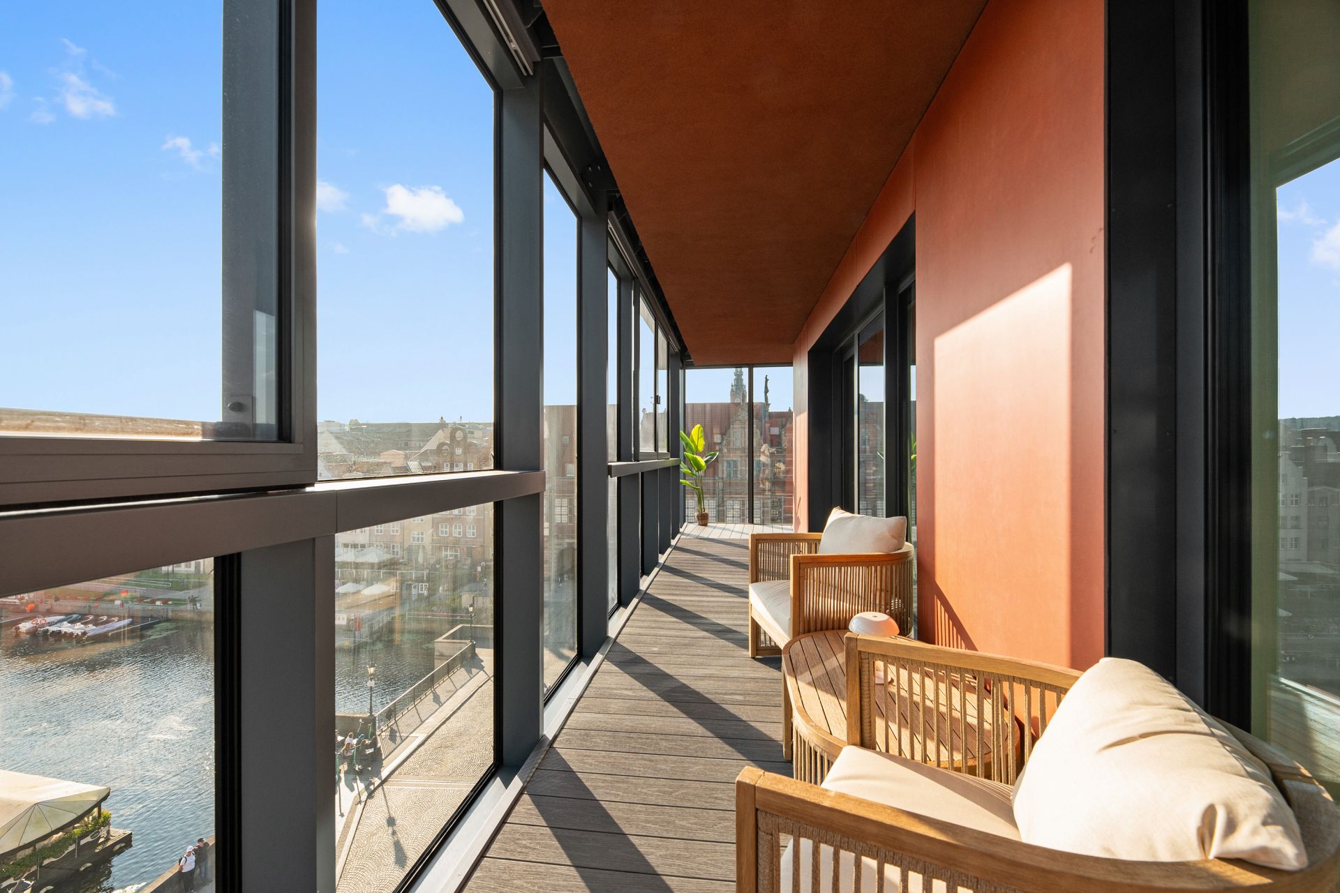 Wnętrza charakteryzują się harmonijnym połączeniem nowoczesnego designu z naturalnymi materiałami. Przestronny salon z panoramicznymi oknami i wyjściem na duży balkon zachwyca widokiem na rzekę i historyczną zabudowę Gdańska. To idealne miejsce na poranną kawę lub wieczorny relaks. W pełni wyposażona kuchnia z luksusowymi blatami i nowoczesnym sprzętem pozwoli Ci na przygotowanie dowolnego posiłku, a część jadalna stworzy idealne tło dla wspólnych spotkań.