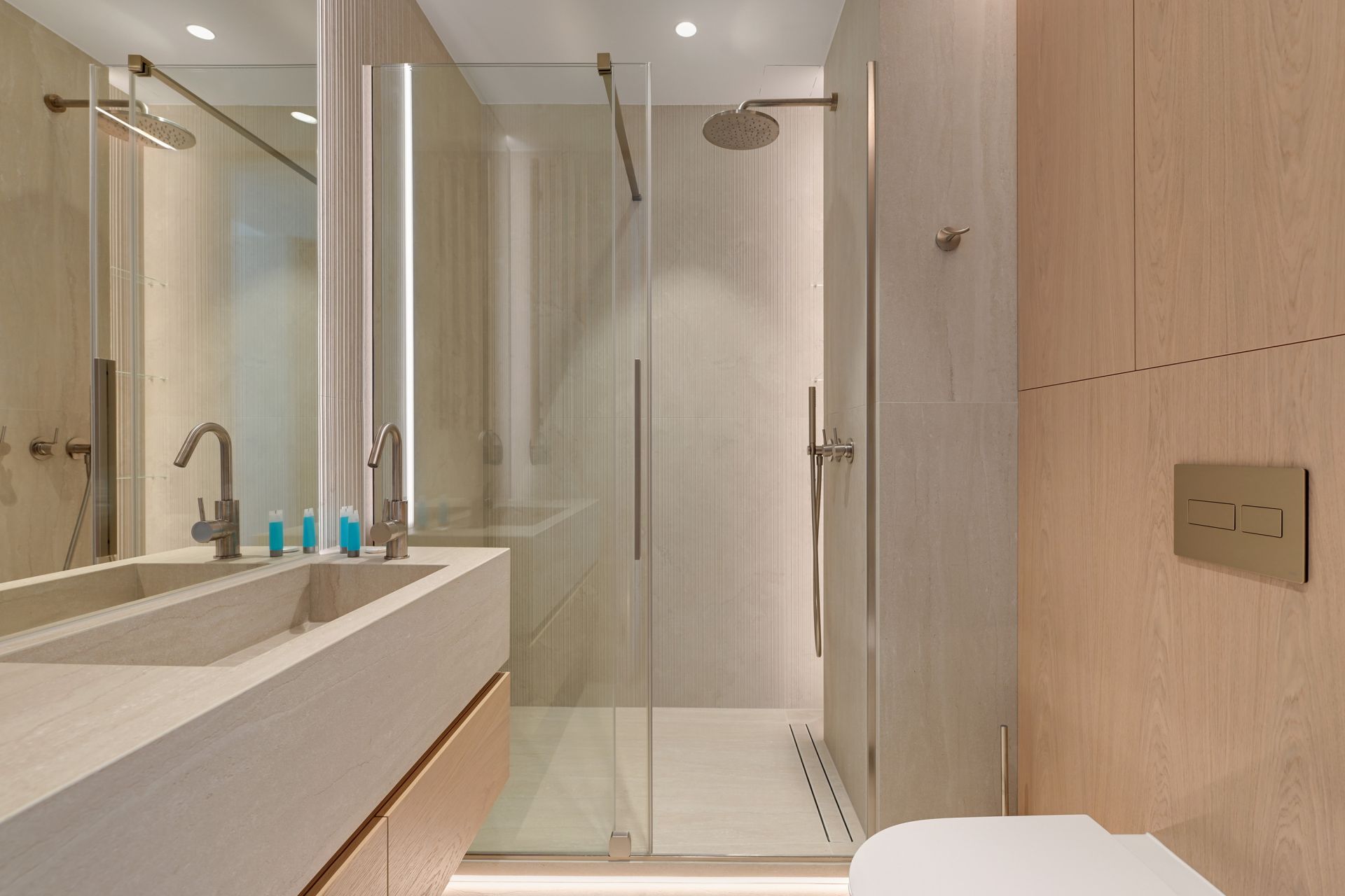 Dwie eleganckie sypialnie z wygodnymi łóżkami zapewniają spokojny sen. Do dyspozycji gości są dwie luksusowe łazienki: jedna z przestronnym prysznicem, a druga z wolnostojącą wanną, co gwarantuje komfort i prywatność.