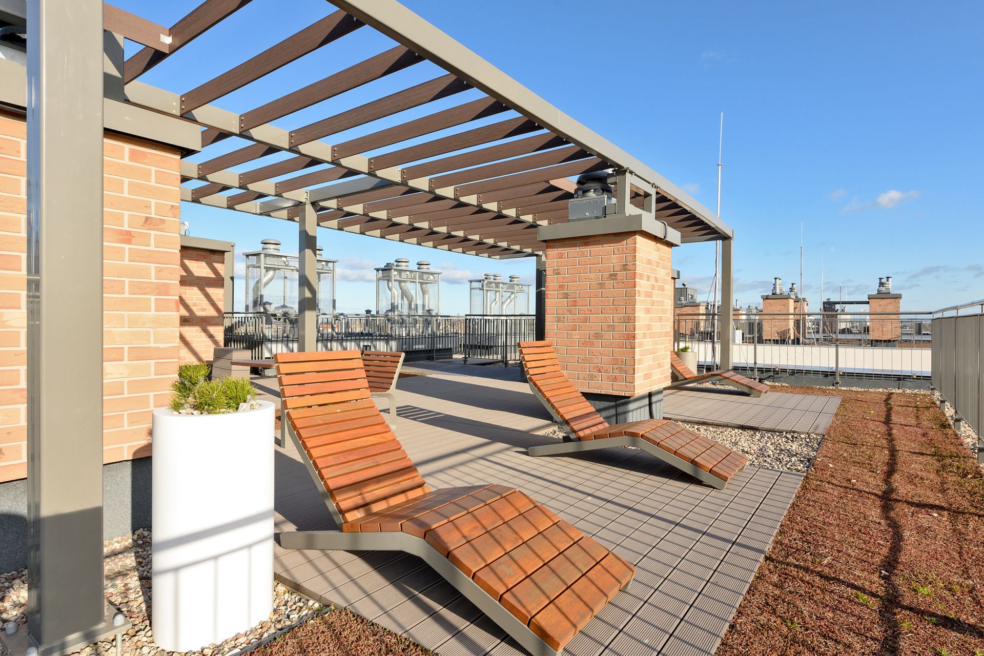 Nowoczesny, dwupokojowy apartament położony w urokliwej dzielnicy Gdańska, gdzie od Starego Miasta dzieli nas pięciominutowy spacer. Modny wystrój i funkcjonalne wnętrze spełnią oczekiwania nawet najbardziej wymagających gości. Oddzielna sypialnia z podwójnym łóżkiem, dodatkowo w salonie rozkładana sofa oraz w pełni wyposażony aneks kuchenny i łazienka z prysznicem. Na dachu budynku usytuowany jest przestronny taras ze zniewalającym widokiem na Stare Miasto. Otaczające go ogrody oraz miejsca przeznaczone do relaksu dodają mu niesamowitego uroku oraz klimatu. Taras przeznaczony jest do użytku wszystkich mieszkańców. W pobliżu zlokalizowane są takie atrakcje, jak Fontanna Neptuna, Polska Filharmonia Bałtycka i Brama Zielona.
