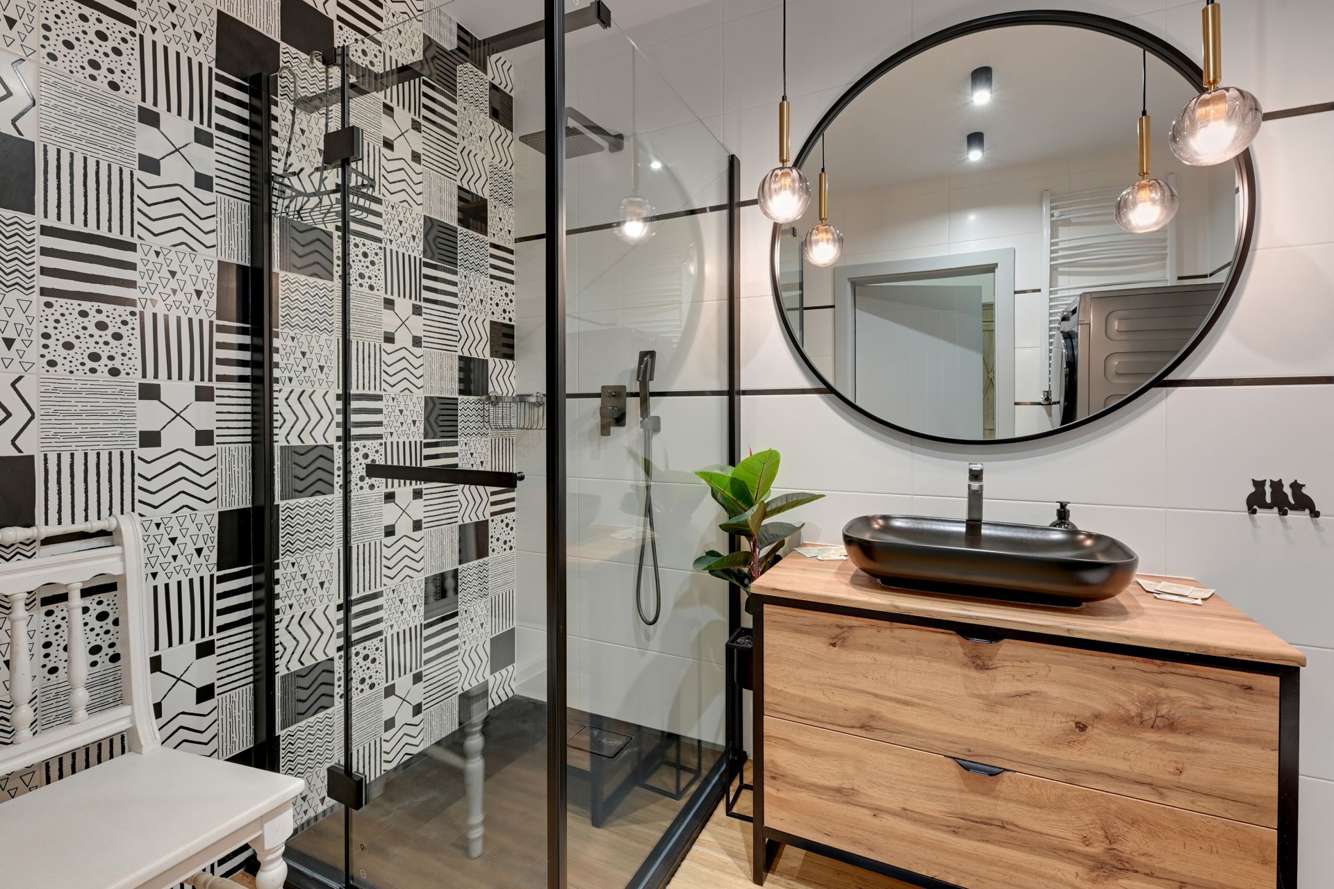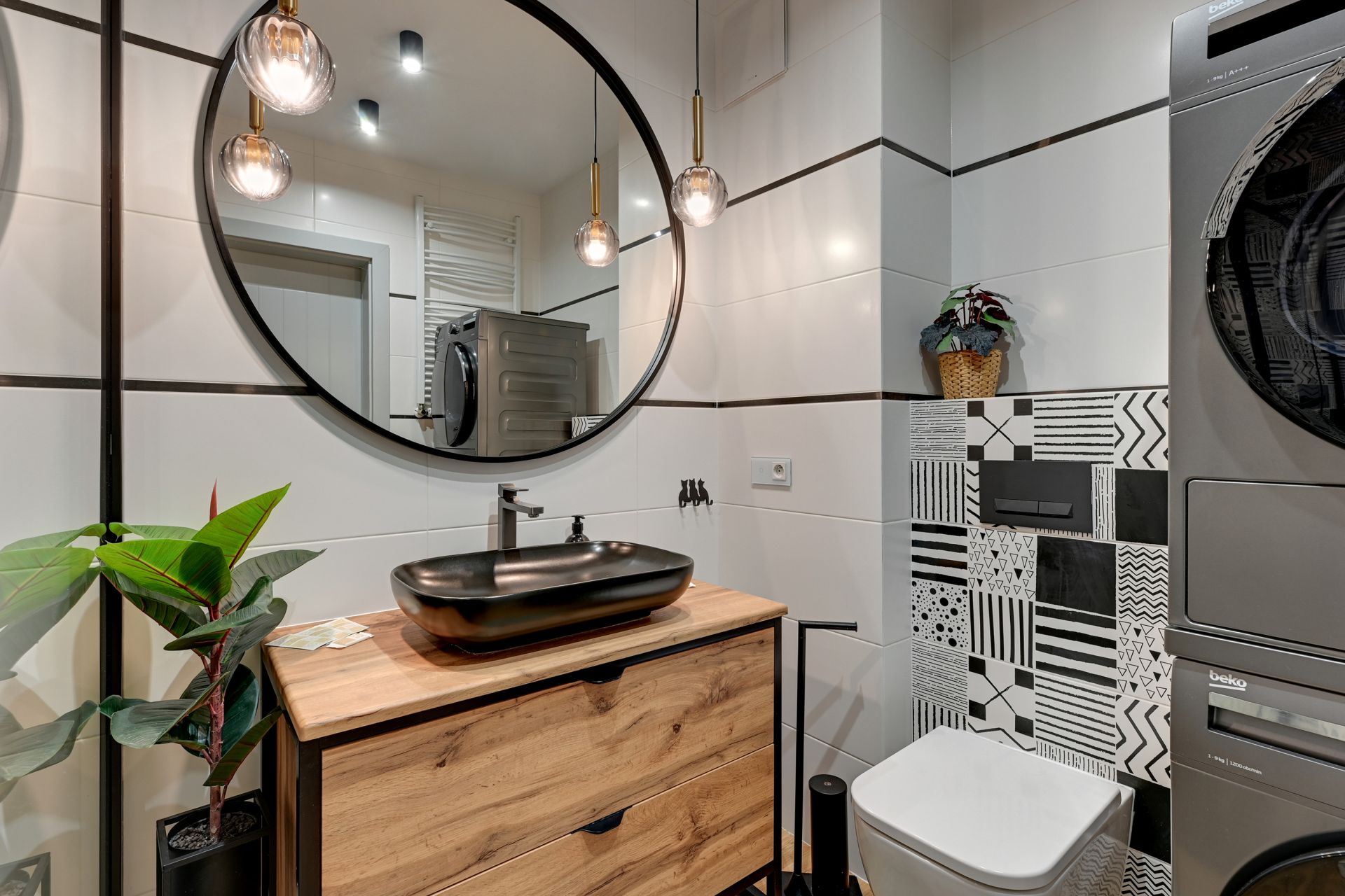 Apartament został zaprojektowany z myślą o przytulnym, ale nowoczesnym stylu. Sercem apartamentu jest przestronny salon, który łączy się z jadalnią i w pełni wyposażoną kuchnią. Zwraca uwagę designerska lodówka SMEG, która dodaje wnętrzu unikalnego charakteru. W salonie znajduje się duża, wygodna sofa narożna, która po rozłożeniu tworzy dodatkowe miejsce do spania dla dwóch osób.