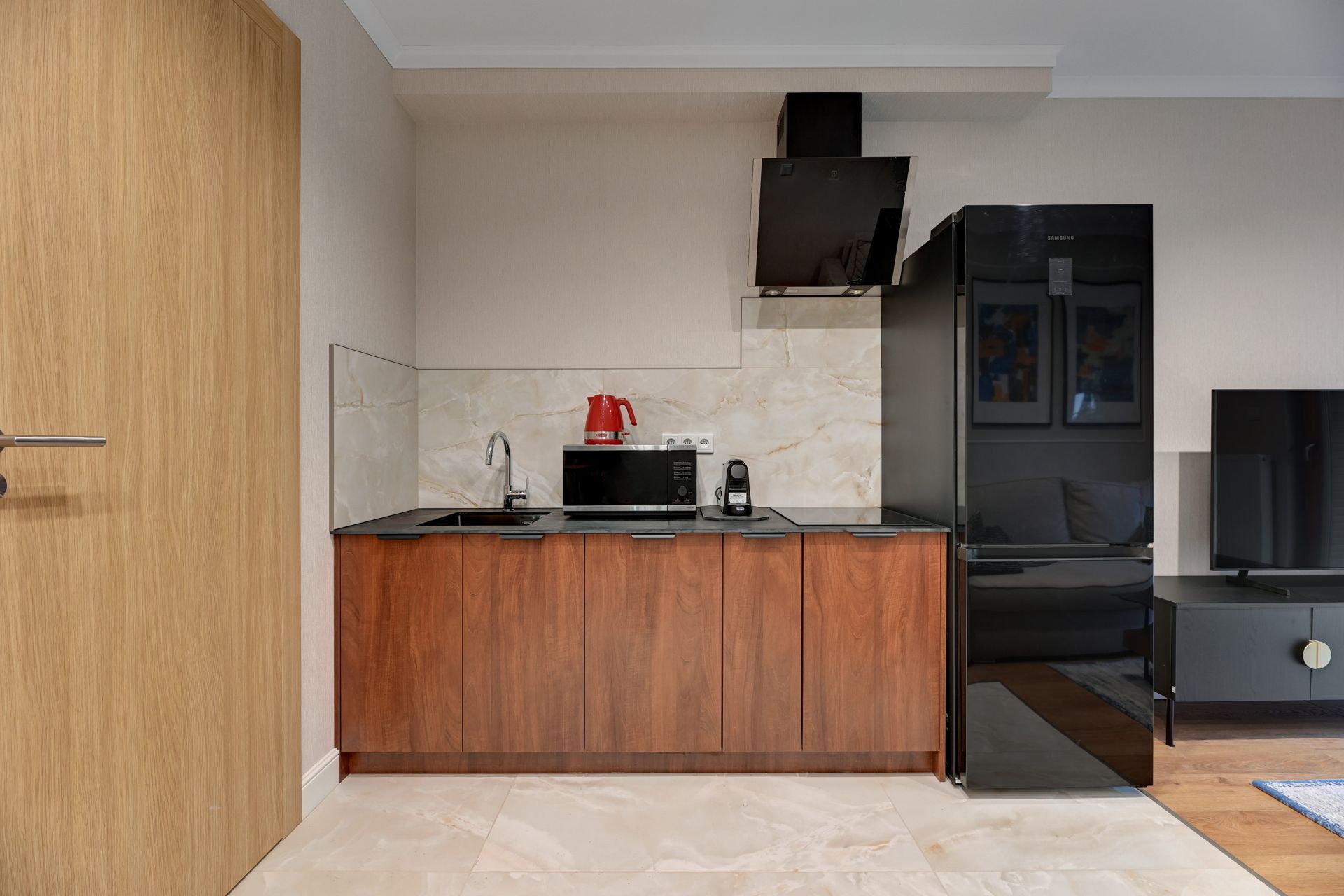 Dwie strefy sypialne: Do dyspozycji macie Państwo jedną oddzielną sypialnię oraz jedną strefę typu studio, co pozwala na wygodny nocleg dla 8 osób. Wnętrza utrzymane są w ciepłych, stonowanych barwach beżu i drewna, tworząc przytulną i relaksującą atmosferę.