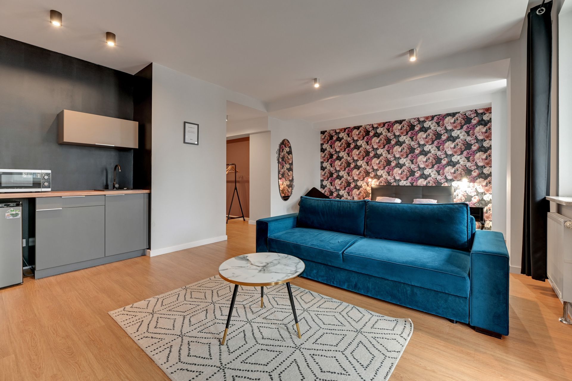 To 41-metrowe studio łączy nowoczesny design z praktycznymi rozwiązaniami, tworząc idealne miejsce na wakacyjny wypoczynek. Otwarta przestrzeń obejmuje strefę dzienną/sypialną, aneks kuchenny, stylową łazienkę oraz balkon.
