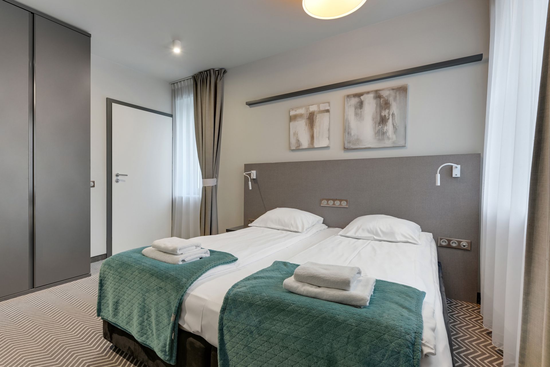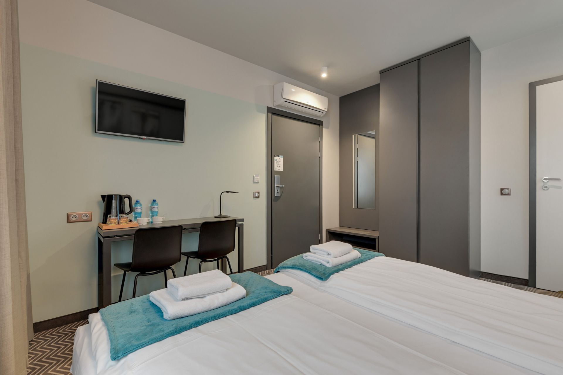 Pokój dwuosobowy typu standard o powierzchni 14 m² położony w cichej części hotelu zapewnia spokojny wypoczynek. Wyposażony w dwa łóżka o wymiarach 90x200 cm, z możliwością połączenia ich w jedno na życzenie Gości.