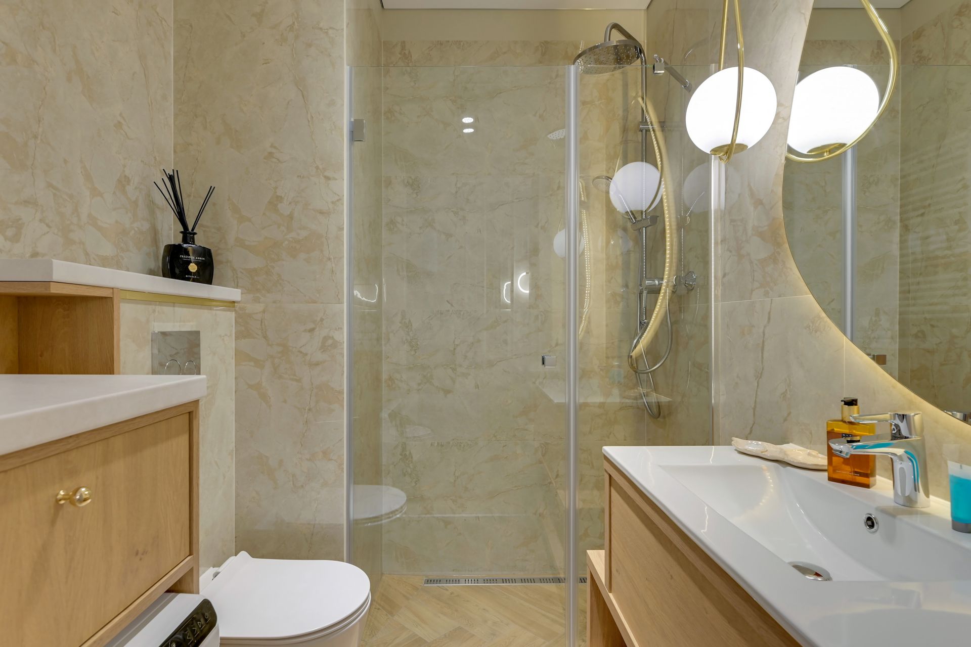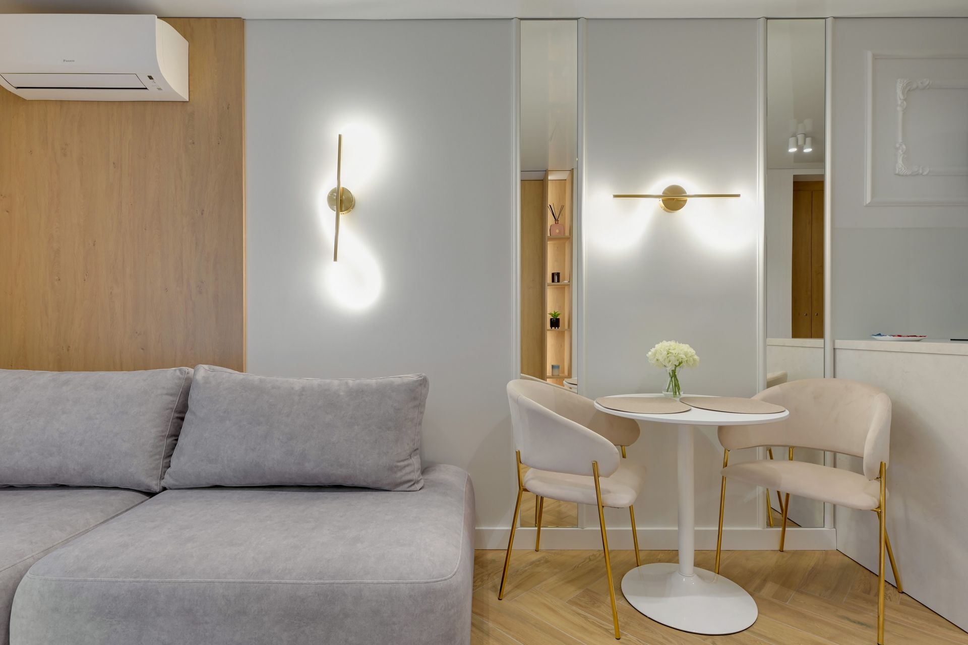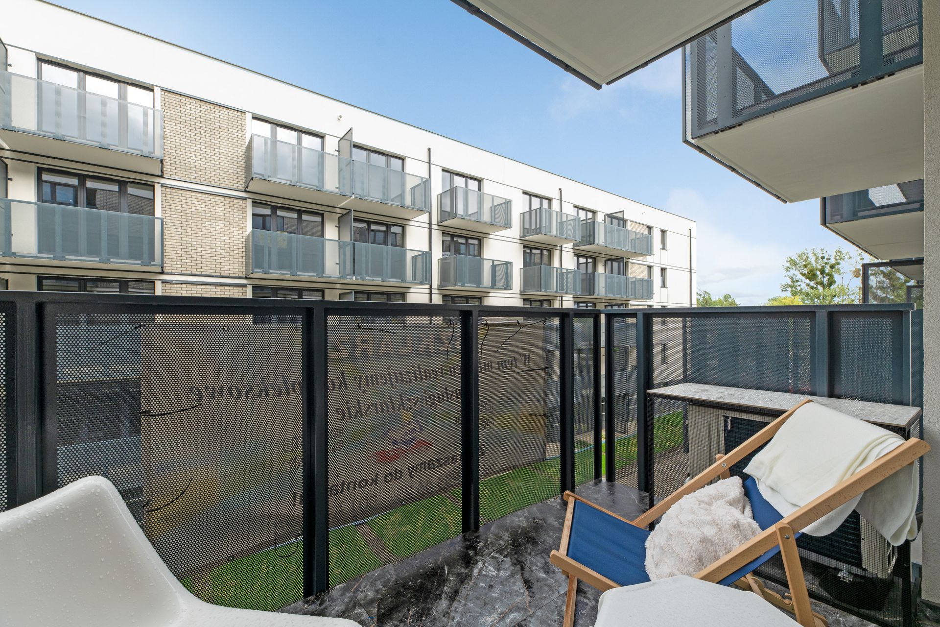 W apartamencie znajdziesz wszystko, czego potrzebujesz: wygodne łóżko, rozkładaną sofę, w pełni wyposażony aneks kuchenny, a także klimatyzację, która zapewni Ci komfort nawet w najcieplejsze dni. Dużym atutem jest prywatny balkon, gdzie możesz napić się porannej kawy lub odpocząć po dniu pełnym wrażeń. W eleganckiej łazience do Twojej dyspozycji jest pralka, co jest idealnym rozwiązaniem na dłuższe pobyty.