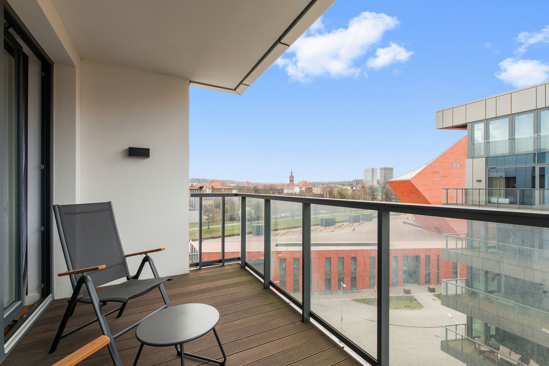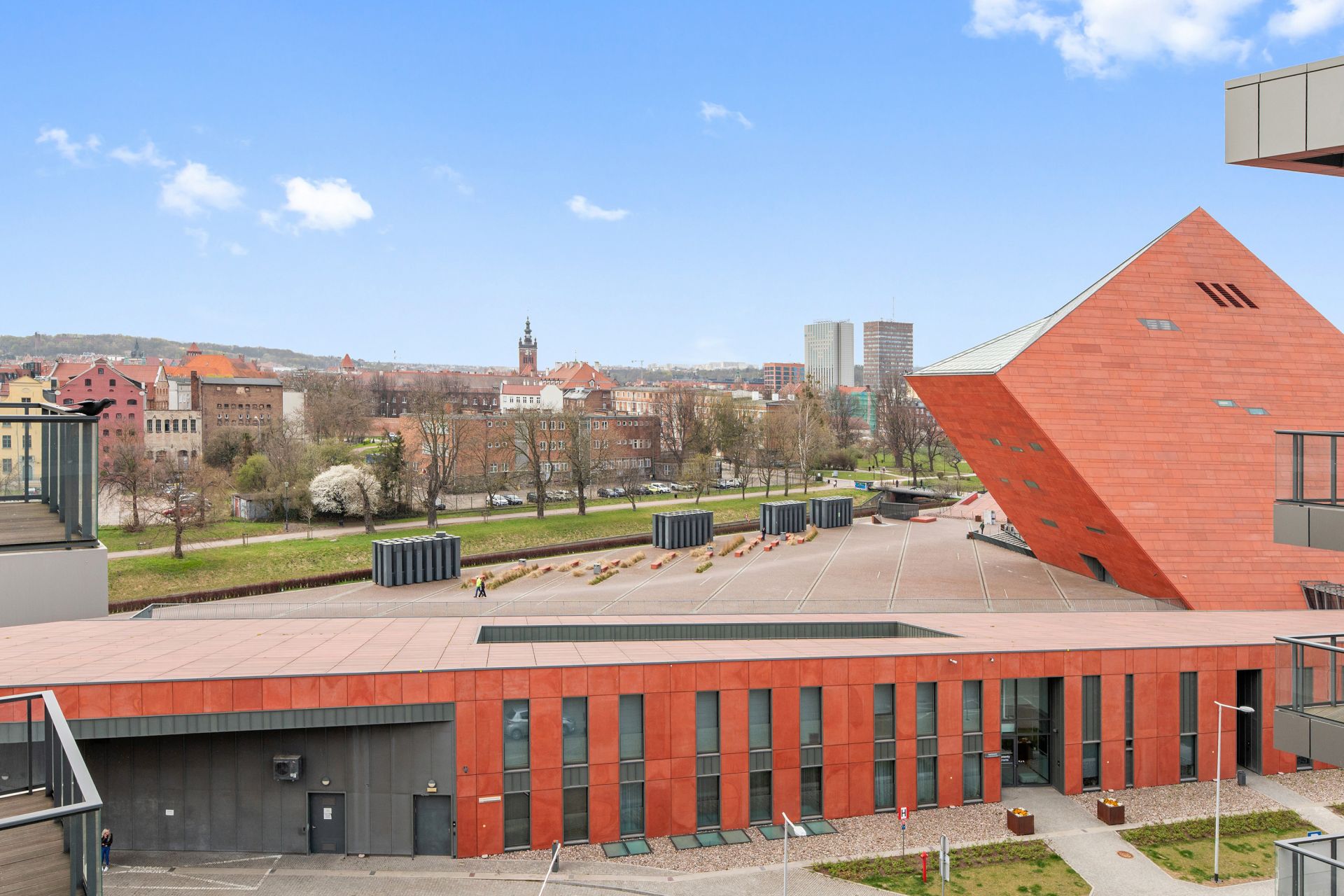 Apartament znajduje się nad samą Motławą. Spacer na Długi Targ zajmuje zaledwie 10 minut, a Muzeum II Wojny Światowej znajduje się tuż za progiem. Budynek oferuje całodobową ochronę, windę oraz reprezentacyjne lobby.