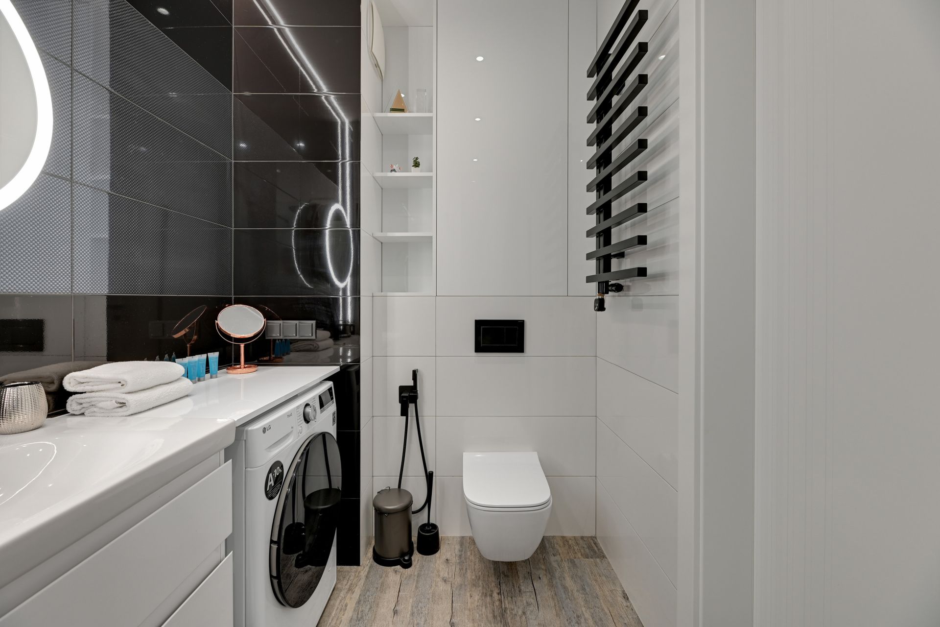 Aneks kuchenny jest w pełni wyposażony, co pozwoli na swobodne przygotowywanie posiłków. Znajdziecie tu Państwo płytę kuchenną, piekarnik, czajnik oraz ekspres do kawy – wszystko, co niezbędne do stworzenia domowych specjałów. Nowoczesna łazienka z prysznicem i pralką zapewni pełen komfort pobytu. Do Waszej dyspozycji jest również szybki dostęp do Wi-Fi oraz Smart TV, aby niczego Wam nie zabrakło podczas wieczornego relaksu. Dodatkowo, apartament posiada balkon, idealny na chwilę wytchnienia.