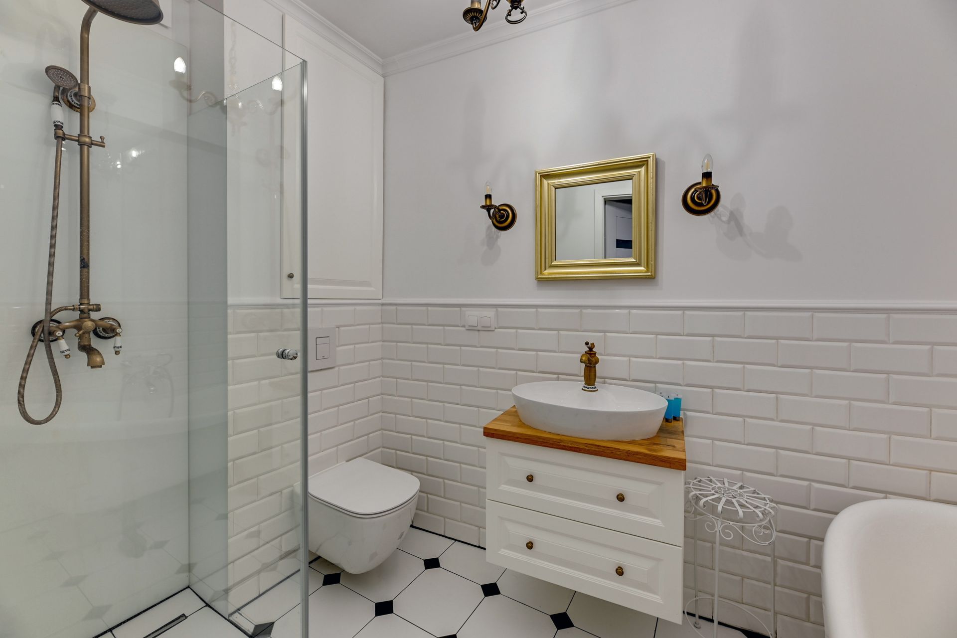 Przestrzeń do Relaksu i Wspólnych Chwil: Sercem apartamentu jest przestronny salon z aneksem kuchennym. To idealne miejsce do wspólnego spędzania czasu – przygotowywania posiłków w pełni wyposażonej kuchni, relaksu na wygodnej sofie po dniu pełnym wrażeń, czy delektowania się kawą z widokiem na urokliwą ulicę. Nowoczesna łazienka, wyposażona zarówno w wannę, jak i prysznic, oferuje elastyczność i komfort, pozwalając na orzeźwiającą kąpiel pod prysznicem lub odprężającą w wannie.